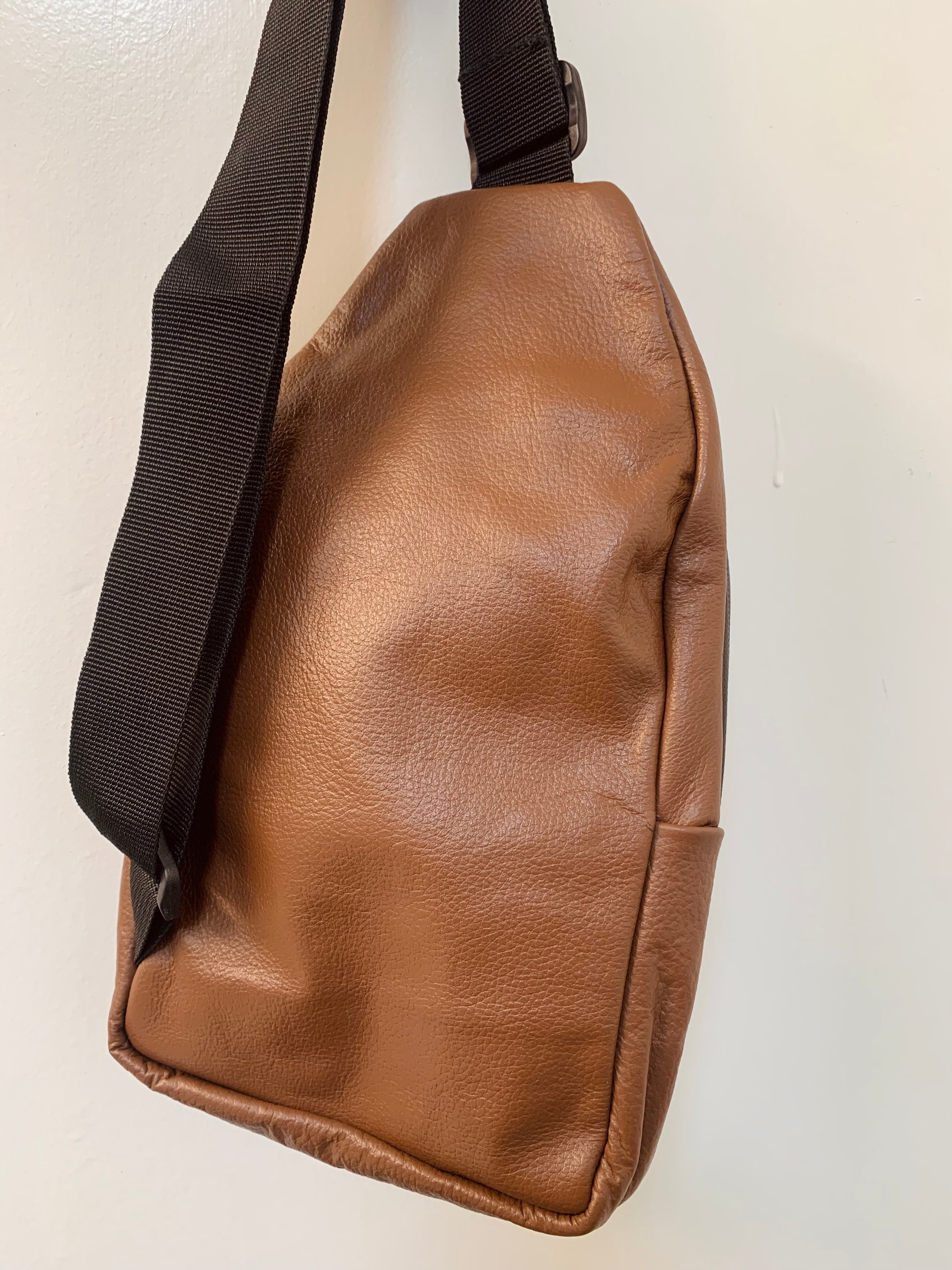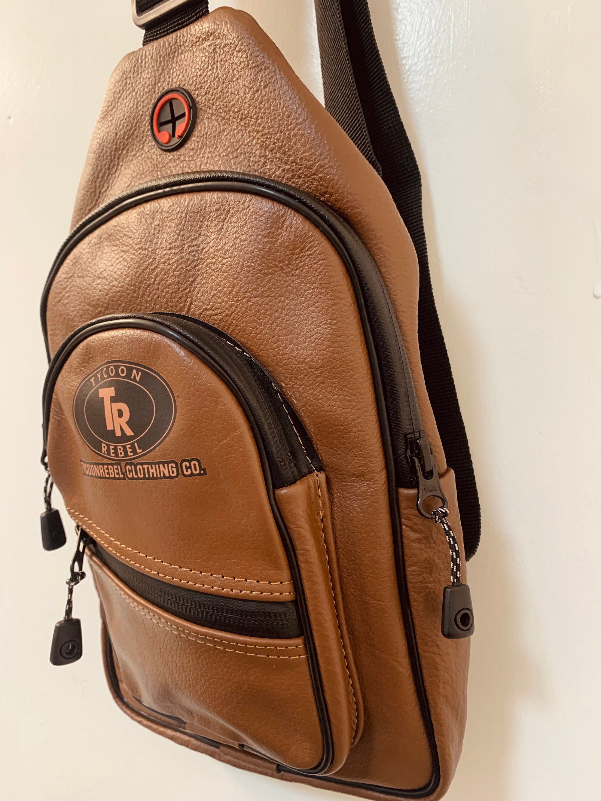 Tycoonrebel Leather TYCOON LOGO Crossbody Bag Messenger Sling Bag Light Brown